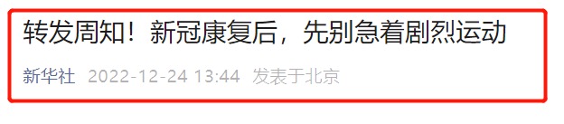 今年是不安稳的一年,首先是疫情,俗话常说大疫不过三,过三必有灾,于是乎国家在 1 月就彻底解除防控了,到处都是小🐑人,当然我也没能成为那个”天选打工人”,也中招了,高烧低烧反复,或许怪自己没有做足准备,药也没囤,在家躺了好几天才缓了过来,这个期间就靠不停喝水排毒。但是切记即使阴了之后也一定要休息好,避免剧烈运动,最新新华社突然发了通知,让大家一定要安心静养,先别急着剧烈运动👇🏻 之所以要突然发这样的通知,是因为最近连续出现了很多起悲剧,转阴后有相当多的人有持续不断的疲惫感,这股疲惫感就是身体还在不断对抗病毒的表现。