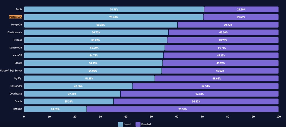 - Stackoverflow面向开发者的年度调查:Rust最受喜爱,PostgreSQL 专业开发者最常使用的数据库!最想要的数据库