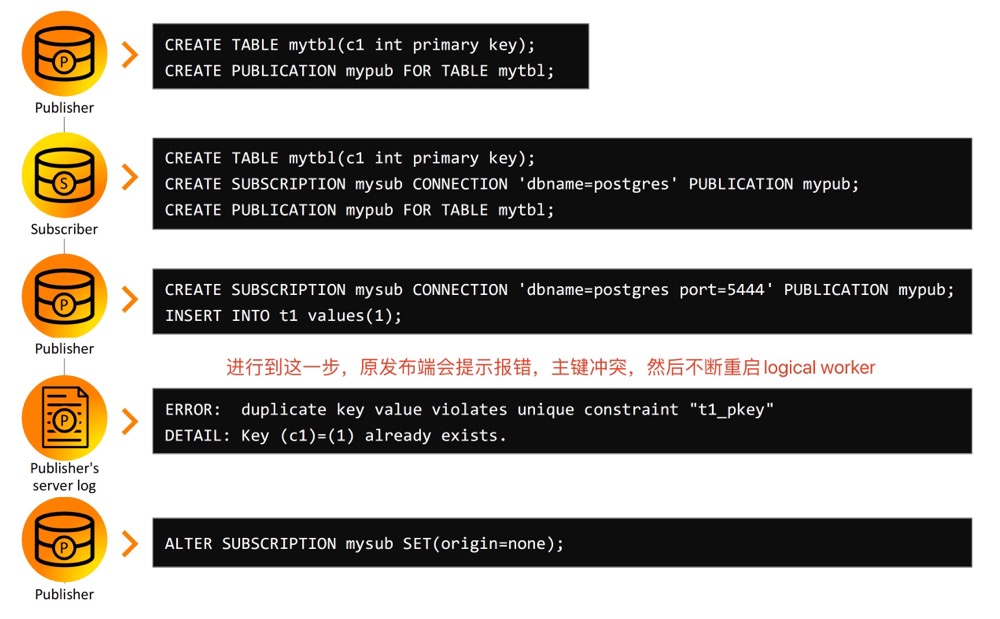 以往这个时候如果不含主键就会不断双向复制,直至撑爆磁盘。在 16,支持设置 origin了,前面也说了,WAL record 里面会包含 origin,用于标识数据的来源 👇🏻