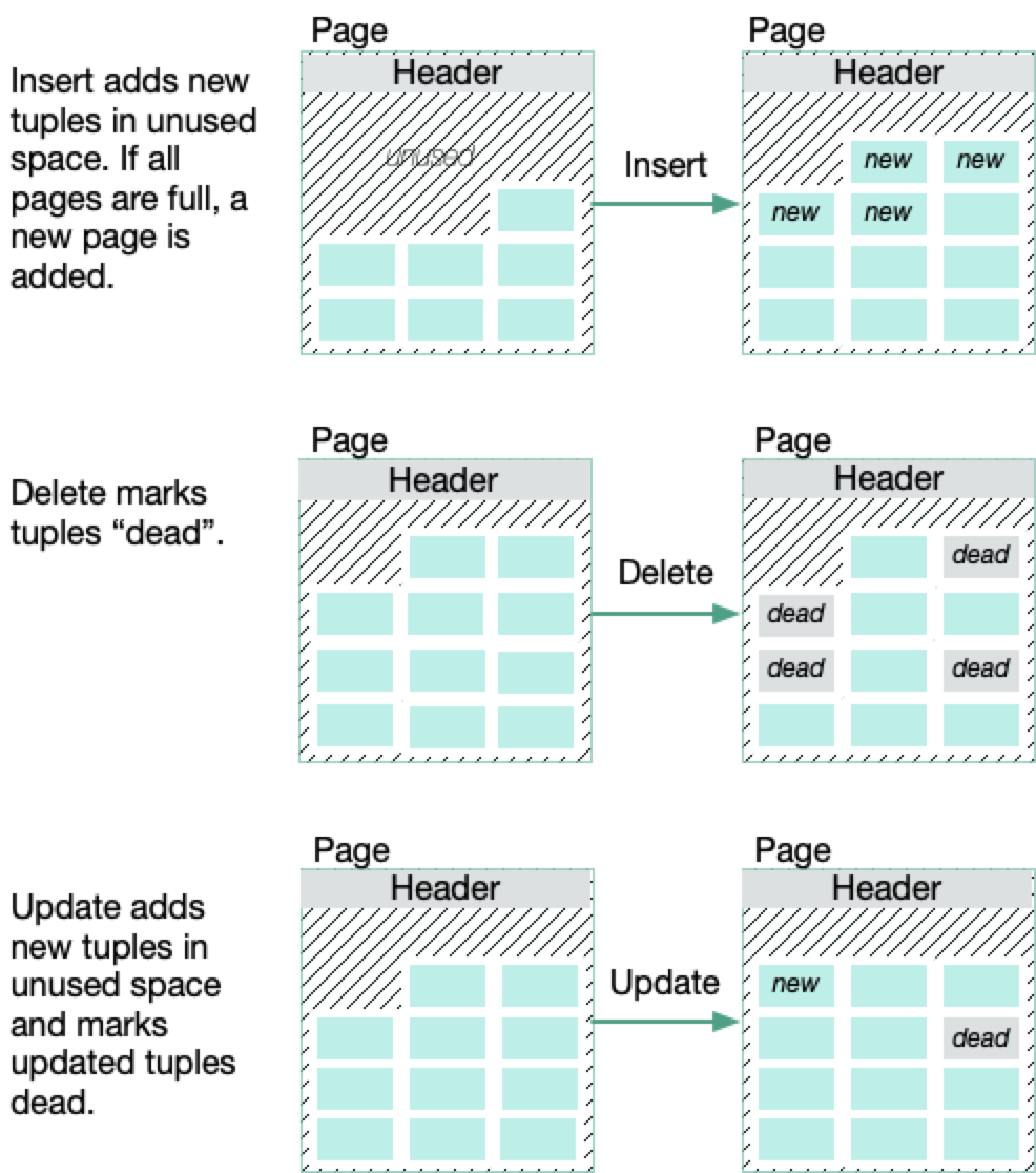 为什么需要vacuum的原因就不再深入,PostgreSQL独特的MVCC实现方式所然,需要引入vacuum清理留下的死元祖,空间复用。