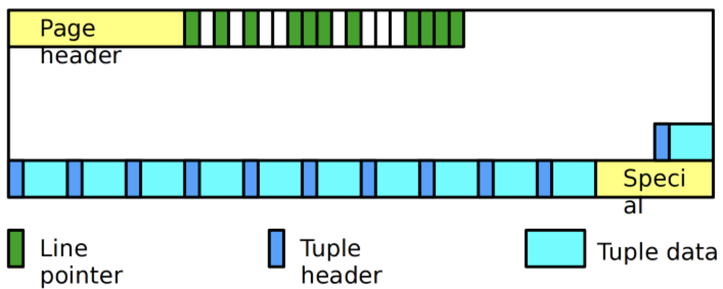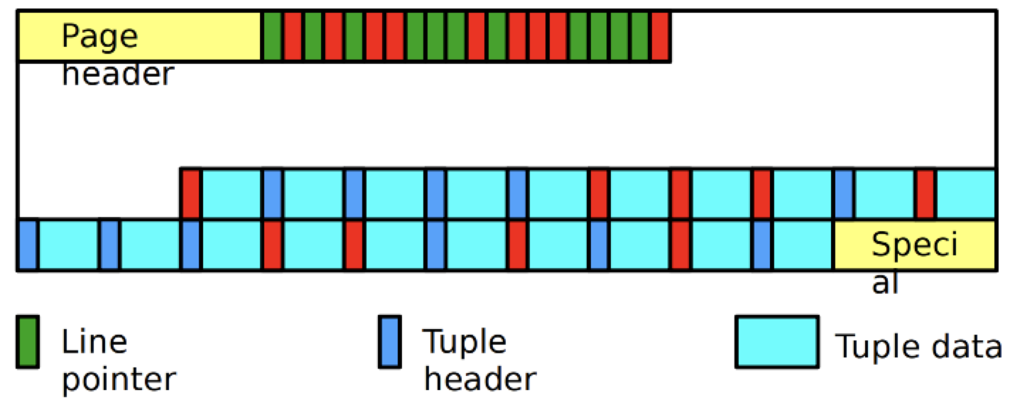 1 2 3 4 5 6 7 8 9 10 11 12 13 14 15 16 17 18 19 20 21 22 23 24 25 26 27 28 29 30 31 32 33 34 35 postgres= # create table test(id int ,info text); CREATE TABLE postgres= # insert into test values (1 ,'hello' ); INSERT 0 1 postgres= # insert into test values (100 ,'world' ); INSERT 0 1 postgres= # insert into test values (2 ,'xiongcc' ); INSERT 0 1 postgres= # checkpoint ; CHECKPOINT postgres= # select pg_relation_filepath('test' ); pg_relation_filepath base/ 5 / 58559 (1 row ) postgres= # SELECT lp,lp_off,lp_flags,t_ctid,t_data,infomask(t_infomask,1 )as infomask,infomask(t_infomask,2 )as infomask2 FROM heap_page_items(get_raw_page('test' , 0 )); lp | lp_off | lp_flags | t_ctid | t_data | infomask | infomask2 1 | 8152 | 1 | (0 ,1 ) | \x010000000d68656c6c6f | XMAX_INVALID| HASVARWIDTH | 2 | 8112 | 1 | (0 ,2 ) | \x640000000d776f726c64 | XMAX_INVALID| HASVARWIDTH | 3 | 8072 | 1 | (0 ,3 ) | \x020000001178696f6e676363 | XMAX_INVALID| HASVARWIDTH | (3 rows ) postgres= # \! sh encode.sh TID: 1 data offset : 8152 length: 34 binary : 0000000001000100 1001111111011000 TID: 2 data offset : 8112 length: 34 binary : 0000000001000100 1001111110110000 TID: 3 data offset : 8072 length: 36 binary : 0000000001001000 1001111110001000 TID: 4 data offset : 0 length: 0 binary : 0000000000000000 0000000000000000 TID: 5 data offset : 0 length: 0 binary : 0000000000000000 0000000000000000 TID: 6 data offset : 0 length: 0 binary : 0000000000000000 0000000000000000 TID: 7 data offset : 0 length: 0 binary : 0000000000000000 0000000000000000 TID: 8 data offset : 0 length: 0 binary : 0000000000000000 0000000000000000 TID: 9 data offset : 0 length: 0 binary : 0000000000000000 0000000000000000 TID: 10 data offset : 0 length: 0 binary : 0000000000000000 0000000000000000