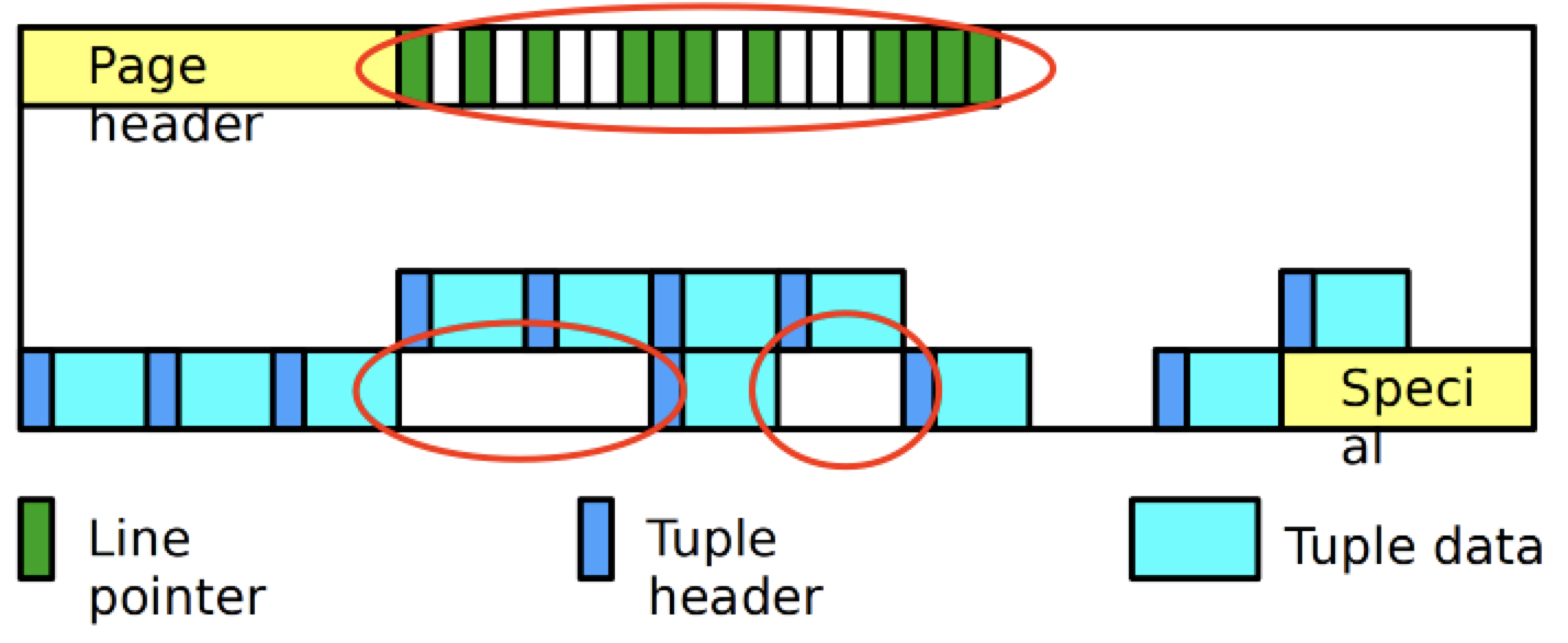 为此,PostgreSQL 会重排,将数据重新挪动,紧实碎片