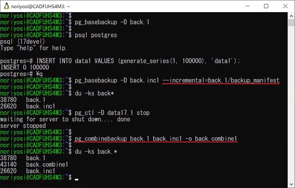 其次 PostgreSQL 17 内置块级别物理增量备份 (INCREMENTAL backup/pg_combinebackup)功能,具体细节可以参照德哥帖子:https://github.com/digoal/blog/blob/master/202312/20231222_01.md,使用 pg_combinebackup 将一个全量备份 + 一个或多个增量备份合并为一个全新的全量备份。