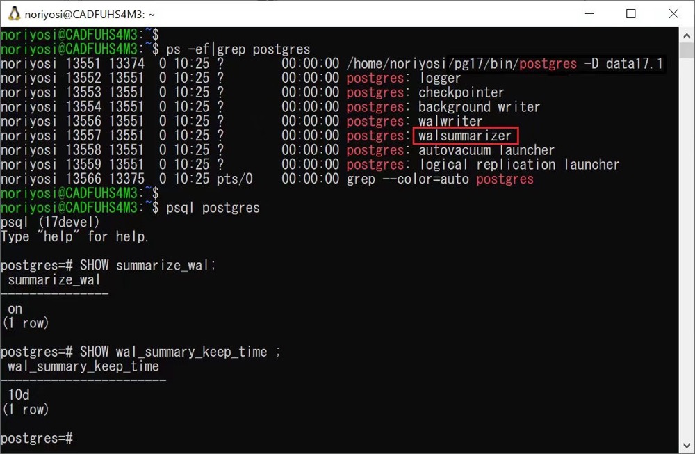 17 中还添加了一个 WAL summarizer process,顾名思义,会记录一些 WAL 的总览信息,告诉我们在增量备份覆盖该范围的 WAL 记录时,需要复制哪些块,为增量备份提供基础。