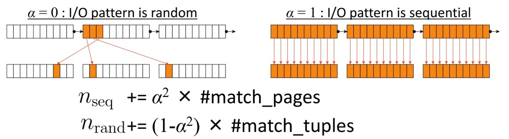 T:表中的页面数N:表中的元组数s:约束条件的选择率b:表上的页面已经在缓存中的数量