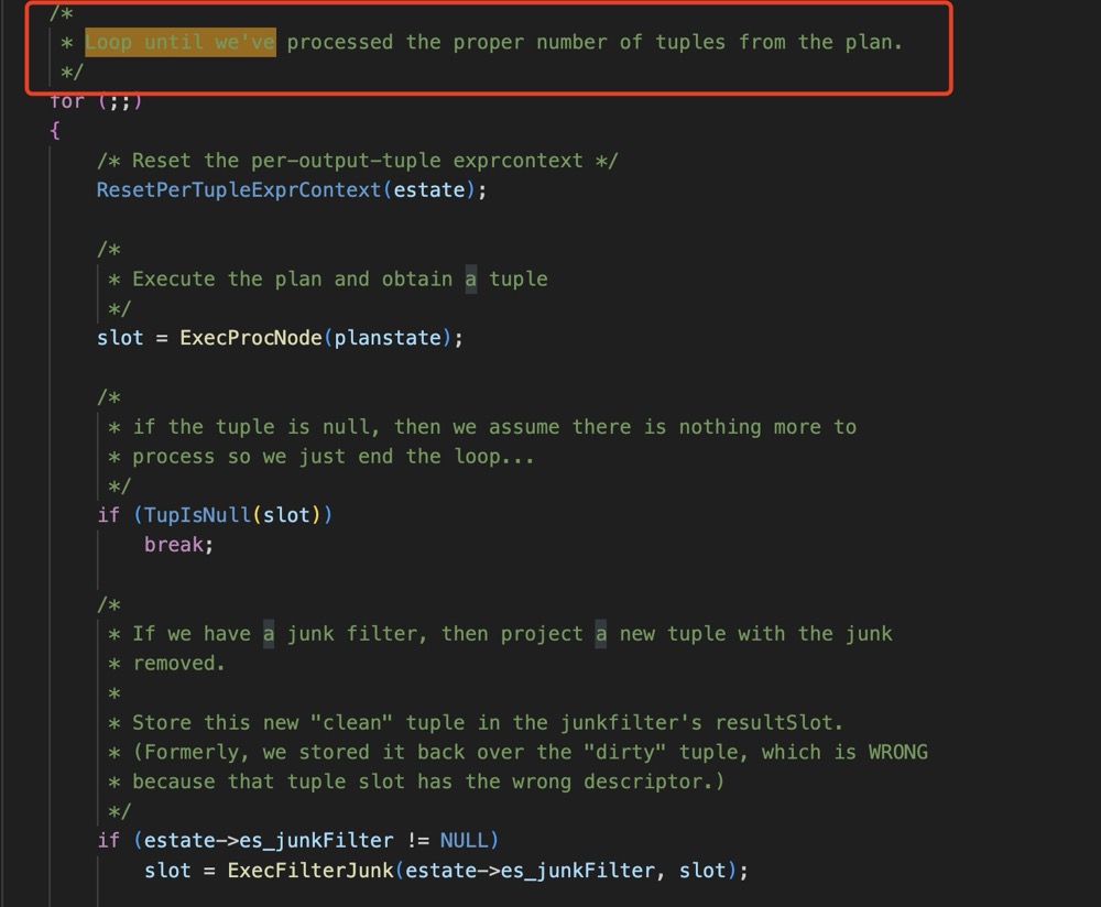 - 火山模型,可以很容易实现输出控制,比如 limit 返回 TopN 的时候,虽然被称为流水线方式,但是某些算子是会阻塞流水线的,也就是需要等到子节点完成所有数据的处理后才能继续运转,比如我们所熟知的 ORDER BY,子查询等。另外火山模型处理逻辑清晰,每个Operator 只要关心自己的处理逻辑即可,耦合性低。
