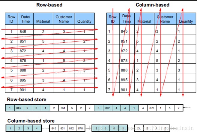 在提及向量化模型之前,我们还需要了解一下列存的概念,以及为什么向量化执行引擎必须要构架在列存储的表上才能够发挥出最大的优势,列存之于向量化引擎,就好比王八看绿豆——看对眼了。列存,顾名思义,按照列进行存储,一列数据存储在一起