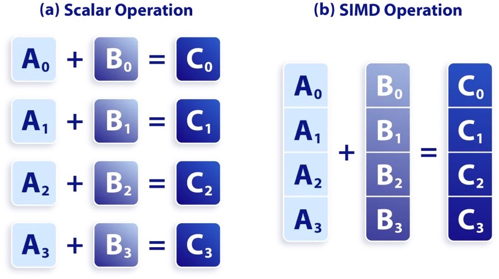 - 一个 SIMD 加法指令,一次可以对两个数组 (向量) 执行加法操作。