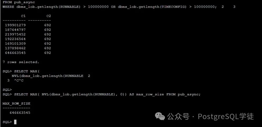 所以知晓了这个原理之后,解决办法也很简单,将 Oracle 中超过 512MB 的行删除,再进行迁移即可。如下是我在 Oracle 侧统计到的结果: