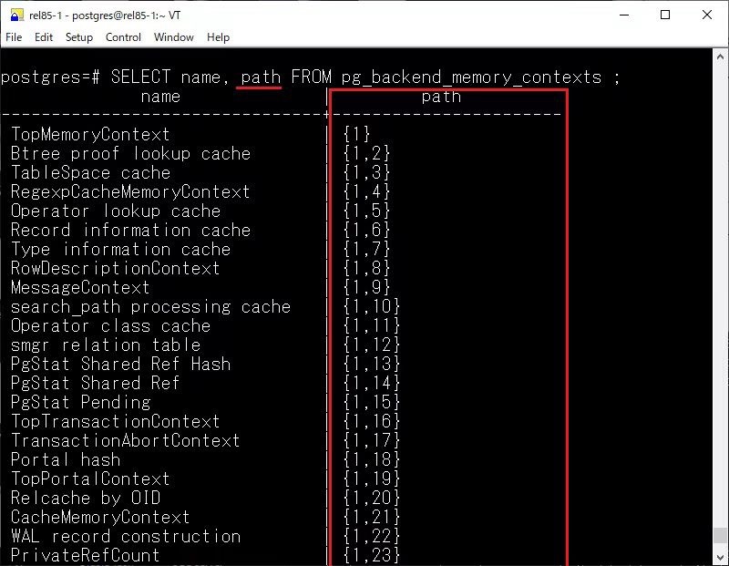 在 pg_backend_memory_contexts 视图中新增了 type、path 和 parent 三个字段,关于内存上下文就不再赘述,感兴趣的可以阅读:https://smartkeyerror.com/PostgreSQL-MemoryContext