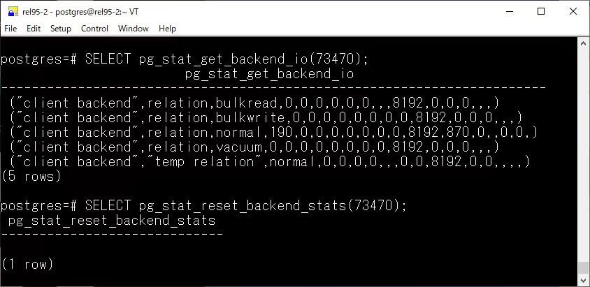新增了 pg_stat_get_backend_io 函数,用于返回指定后端进程的 I/O 统计信息