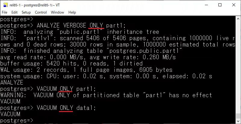 其次还新增了 ONLY 关键字,目的是解决在处理分区表时,VACUUM 和 ANALYZE 操作的一些不便之处。默认情况下,Autovacuum 进程不会自动对分区表执行 ANALYZE,用户必须手动执行。然而手动执行时,又会递归去分析每个分区,对于较大的分区表无疑会十分耗时,尤其是当表的列数很多时。为了解决这个问题,18 中引入了 ONLY 关键字,指定仅对主表进行操作,跳过对分区的处理。这样,用户可以避免在分区表上执行递归分析,节省时间。