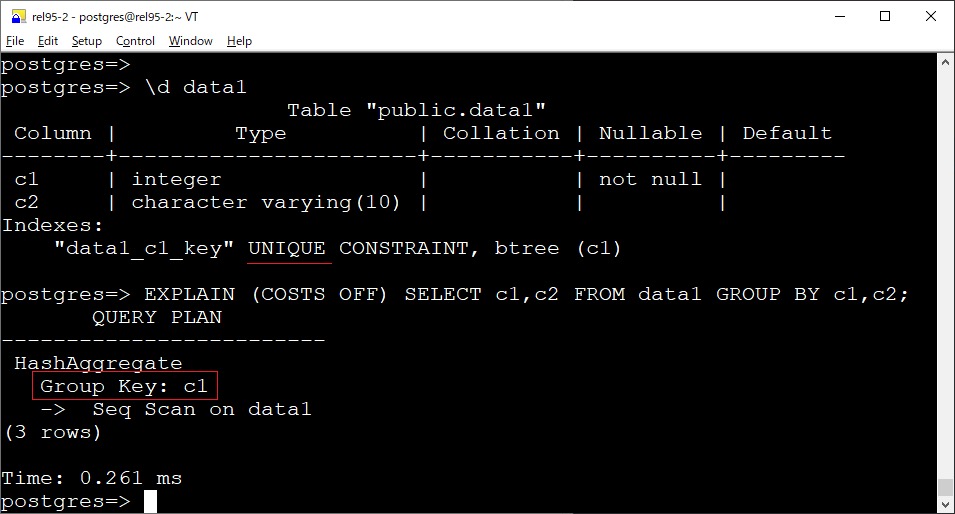 因为如果是按照主键进行分组,由于主键的原因,那么该行必然是唯一的,即使加上其他的列,也是固定的分组。但是比较可惜的是,截止目前只能是主键,唯一约束 + not null 也不行,虽然语义是一样的,代码里有说明 👇🏻