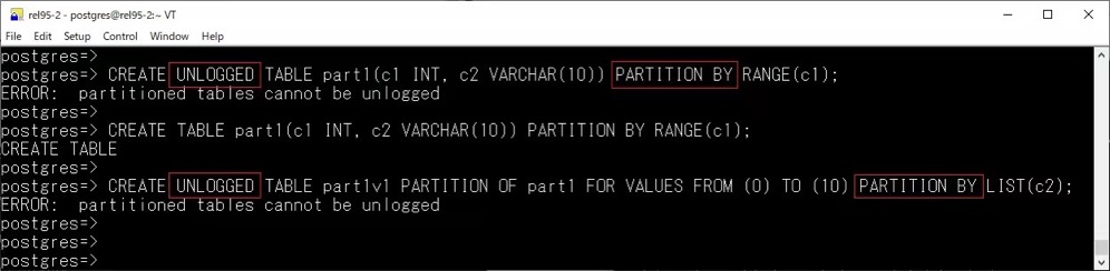 现在分区表不再允许 ALTER TABLE … SET [UN]LOGGED 的操作:
