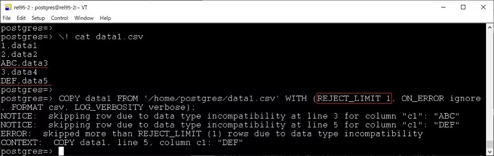 file_fdw 也新增了一个 REJECT_LIMIT 选项 (还新增了on_error 和 log_verbosity)。