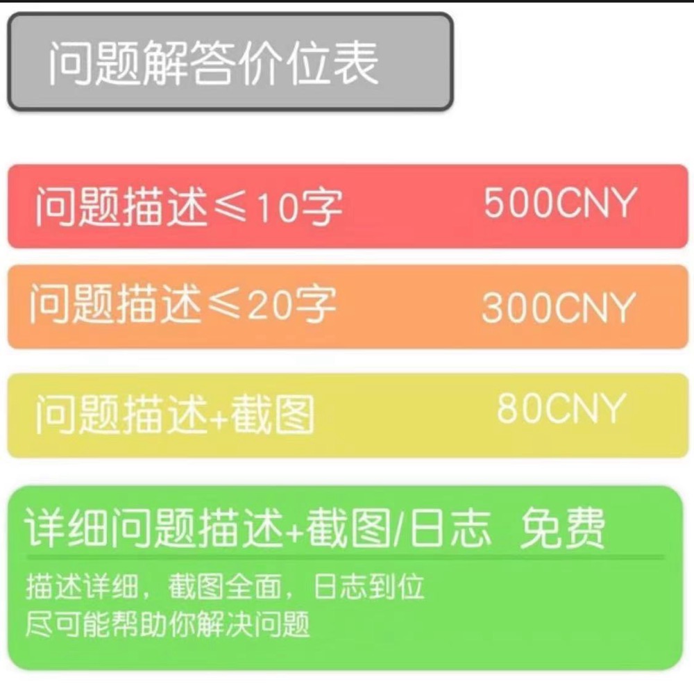 - 仔细、清楚地描述你的问题或 Bug 的症状。