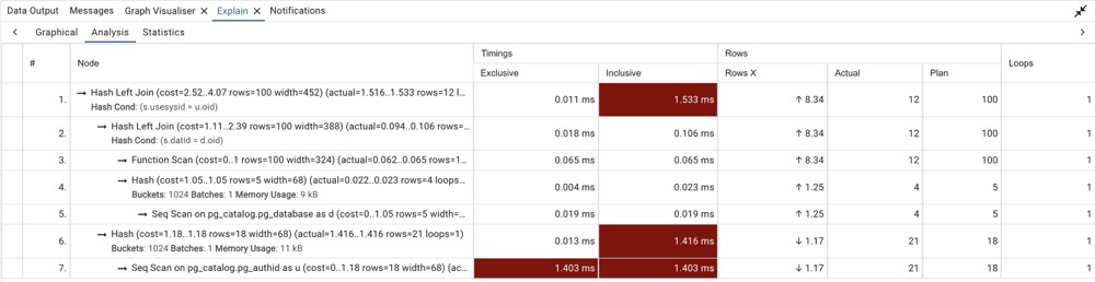 既然是图形用户界面工具,那自然少不了可视化操作,其支持展示查询执行计划并以可视化方式呈现,并且可视化的能力还不错,基本也能达到 explain.depesz.com/ Dalibo/ tensor 等专业 PEV 的七成水准了,我就见过不少新手小白被执行计划给整懵逼的,pgAdmin4 可以帮你,执行顺序也给你贴出来了 👇🏻