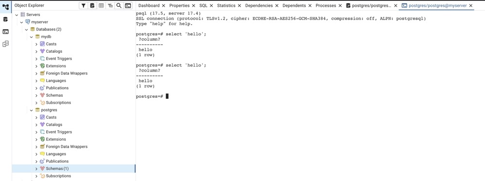 更令我惊讶的是,pgAdmin 4 v8+ 之后甚至还内置了 psql 客户端,还要啥自行车啊,允许你在浏览器界面中直接打开交互式 psql shell,而不需要切回本地终端,因此你可以一边开 Query Tool,一边开 psql 终端,互不影响… 真的是太贴心了,相当于直接把它当成 Web 版的”pgAdmin + 终端”一体工具来用,对于习惯了命令行的专业 DBA 一样能用。