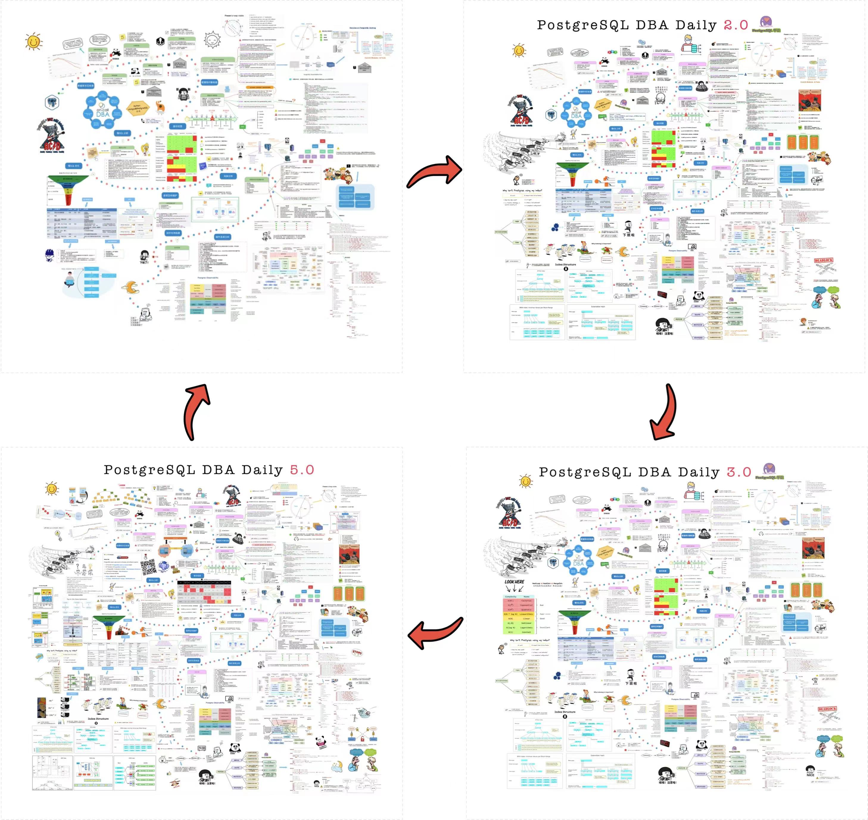 另一个值得称道的是,笔者依然忙里偷闲,继续打磨着 PostgreSQL DBA Daily 大图,迄今已经迭代至 5.0 (PostgreSQL DBA Daily 5.0 那些事儿),一经面世,好评连连,相信也已经有不少读者朋友们都收到了纸质版
